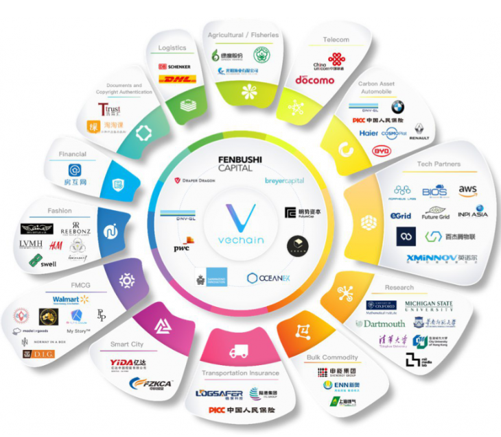 이러한 전망으로 선박 및 연안 구조물에 대한 감사 및 인증 서비스 제공업체인 dmv gl은 2018년 1월 비체인과 제휴하여 식음료 부문에 대한 감사 데이터 수집 및 디지털 보증 솔루션을 제공했고 이 외에도 대규모 감사 및 컨설팅 기업인 프라이즈 워터하우스 쿠퍼즈는 2017년 5월부터 비체인과 협력하여 고객에게 더 나은 제품 검증 및 추적성을 제공했으며 또한 2020년 4월부터 비체인은 5천 개 이상 매장을 보유한 세계에서 두 번째로 큰 의류 소매 업체인 럭셔리 패션 브랜드 hmm에서 사용되었죠.