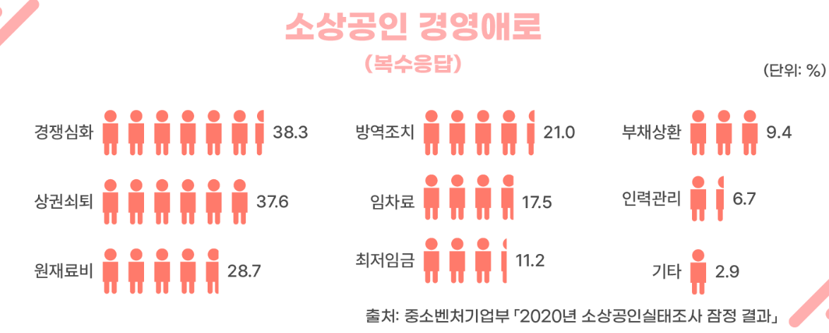- 업종별(음식, 숙박업, 개인서비스업, 소매업, 봉제업 등) 맞춤형 지원