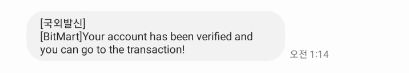 5분정도가 지나니 다음과 같은 문자 메시지가 옵니다. 인증이 완료 되었다는 메시지 입니다.