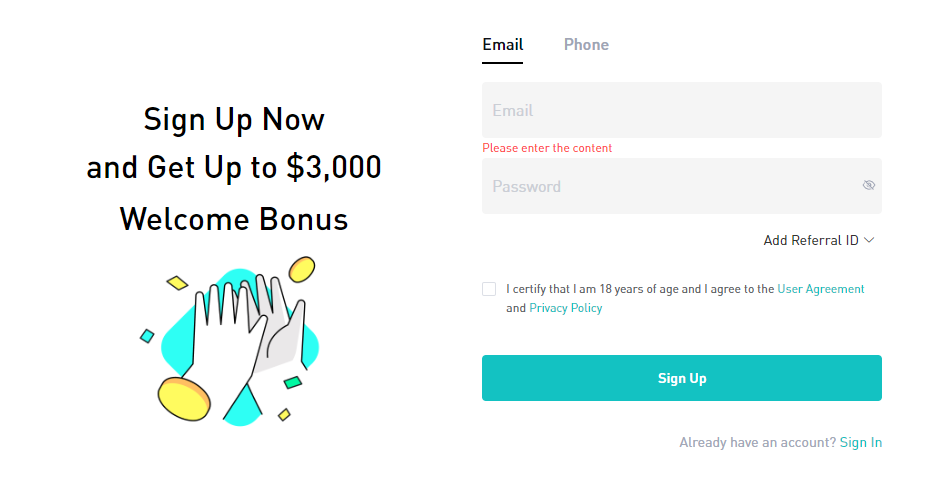 2. 3,000 USDT 입금 + 10만 USDT 거래량 : 100 USDT 증정금