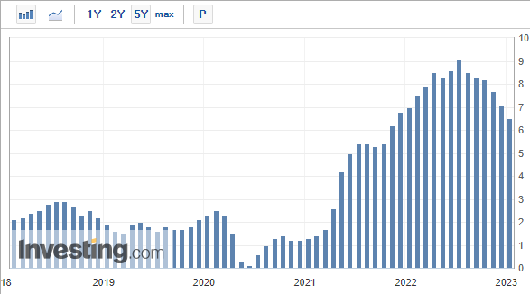 그리고 인플레이션 또한 아직 피크를 찍지 않았으며 올해 2023년도에는 진정한 인플레이션 피크가 올 것이라는 이야기를 했습니다. 마이클 버리가 이러한 이야기를 한 근거는 무엇일까요? 2022년도 작년 6월에 인플레이션이 9.1%를 찍었었습니다. 이 당시에 굉장히 많은 투자자들이 불안해 했고 그와 함께 시장이 엄청나게 폭락했었습니다. 그런데 실제로 이 당시에 9.1%의 피크를 찍은 이후에 서서히 내려오면서 지난달까지는 CPI가 6.5%대까지 내려왔습니다.