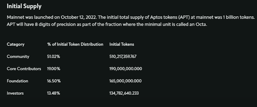 앱토스 초기 공급량
