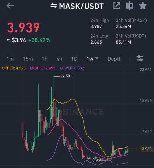 그리고 현재는 폴리곤과 바이낸스 스마트 체인도 사용을 하고 있기 때문에 상당히 안정적인 기반을 사용하고 있습니다. 도지코인이라는 거대한 이름에 묻힌 상태로 야금야금 상승세가 나오고 있는 마스크 네트워크의 추후 행보가 상당히 됩니다.