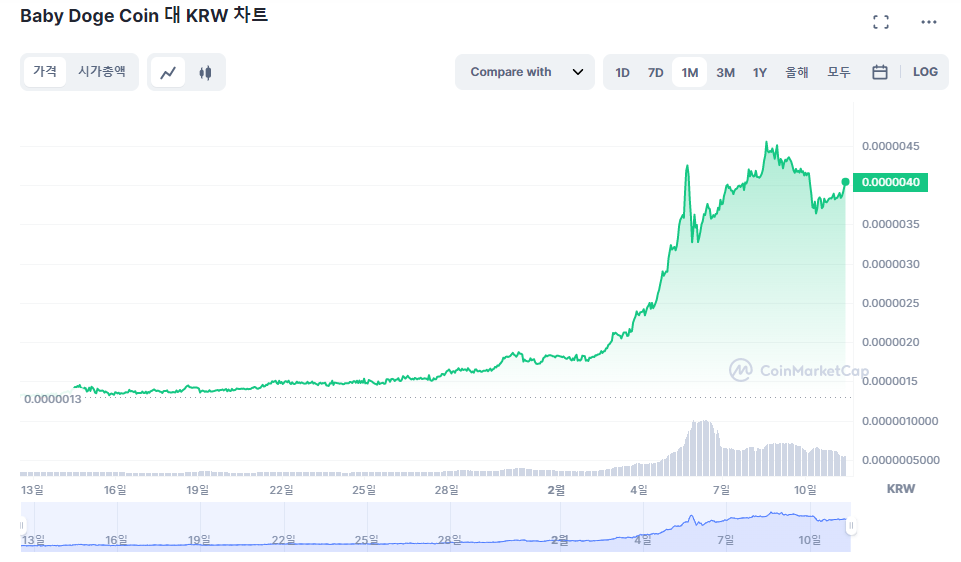 최근 베이비도지의 급등세가 심상치가 않습니다. 한 달 만에 99% 상승률을 보이면서 수많은 투자자들을 놀라게 하고 있습니다. 현재 베이비도지 가격이 상승하고 있는 이유와 미래 가치까지 알