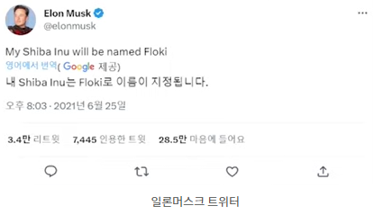 다시 한 번 플로키 코인에 대해서 요약 설명하자면 플로키는 일론 머스크가 키우는 개로부터 시작이 됐습니다. 그리고 일론 머스크에 피가 섞인 동생인 킴벌 머스크와도 140만 달러의 기부금을 통해 모종의 관계로 엮여 있는 코인입니다. 어제 같은 경우에는 일론 머스크는 자신이 기르는 거지 개인 플로키를 트위터 ceo 자리에 앉히는 모습을 연출을 하면서 이 게시물을 올린지 하루밖에 안 됐는데 조회수가 1억을 찍었습니다.