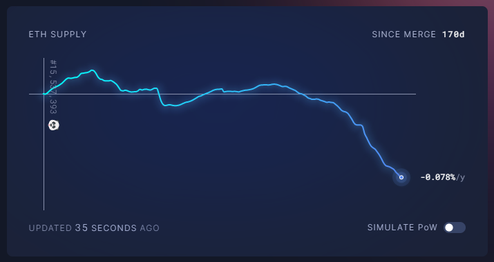그리고 이더리움의 토크노믹스가 매우 좋아지고 있습니다. 이더리움이 디플레이션으로 가고 있습니다. 시간이 지나면서 이더리움의 유통량이 줄어들고 있다는 걸 의미하는 건데 메이저 코인들 중에서 이렇게 좋은 토크노믹스를 가지고 있는 코인은 없습니다. 비트코인도 수량이 늘어나고 있으며 반감기를 지나면서 늘어나는 량이 줄어들 뿐인데, 이더리움은 아예 자체량이 줄어들고 있는 것입니다.